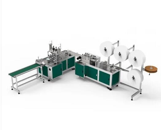 Fully automatic two port flat mask production line is mainly used for the automatic forming of flat masks,the whole roll of fabric is unrolled and driven by rollers, and the fabric is automatically folded and wrapped; The nose wire roll is pulled and unrolled in a whole roll, cut into lengths and then inserted into one side of the edged fabric. It is ultrasonically welded to the seal on both sides, and then ultrasonically sealed on the other two side and cut with a cutter. the mask is conveyed to the mask ear band welding station through an assembly line, and the final mask is formed by ultrasonic welding; After it is finished, it is conveyed to the conveyor belt line for collection through an assembly line.